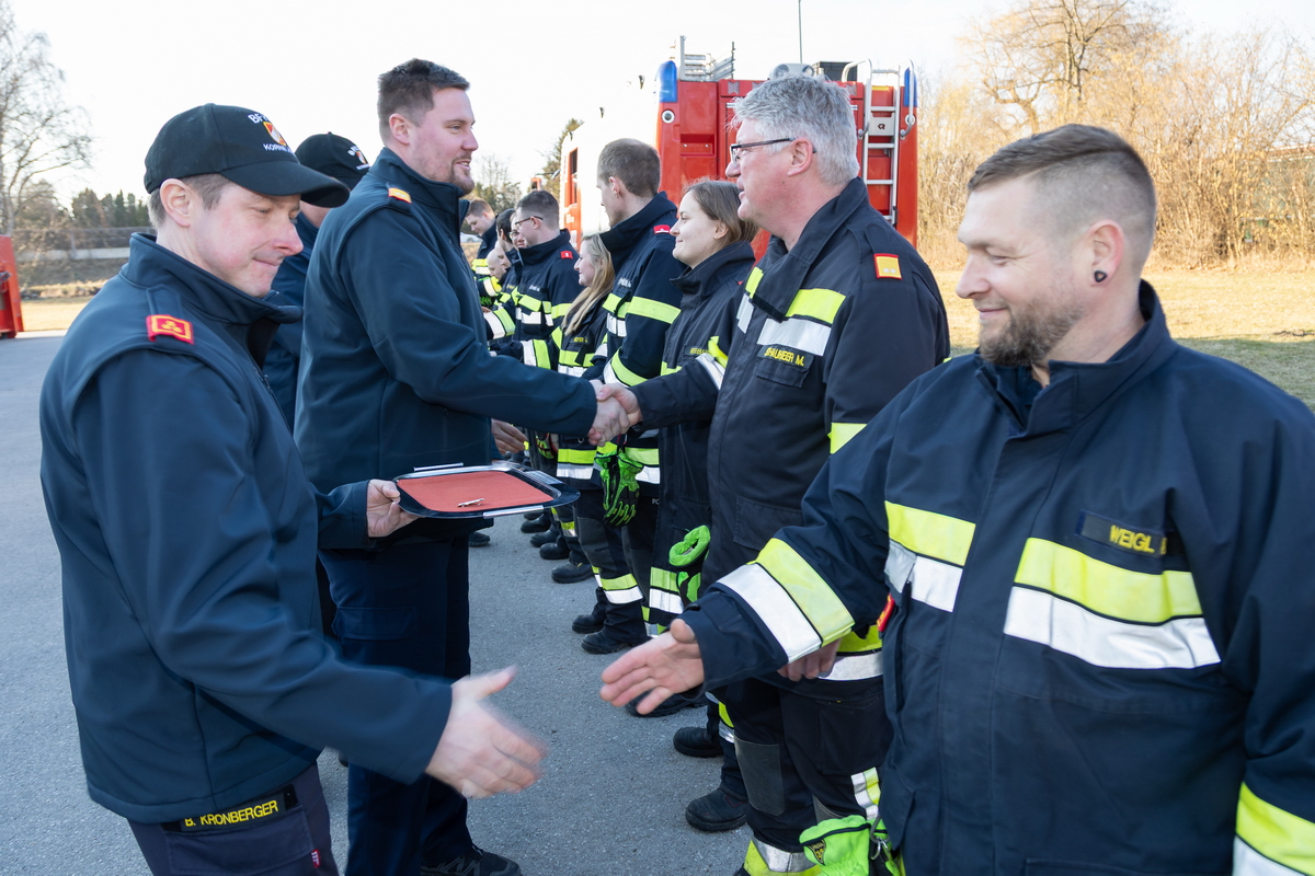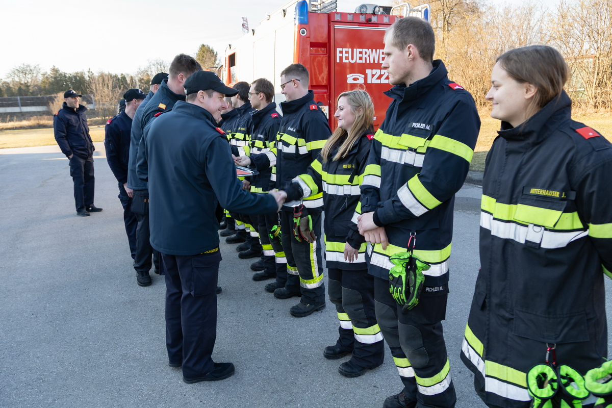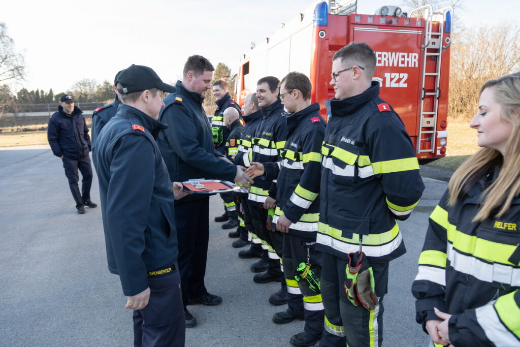 Nach ein paar kurzen Worten von BR Hofmann, BR Schauhuber und HBI Florian fand die Übergabe der begehrten Abzeichen statt.