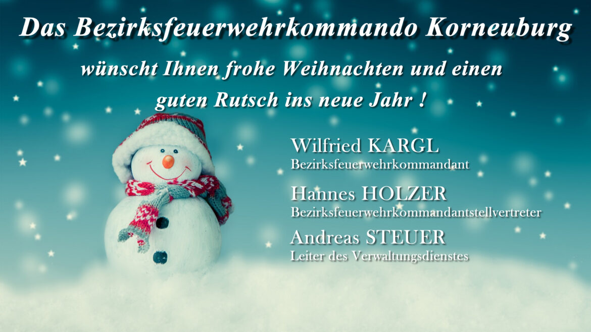 Weihnachtsgrüße des Bezirksfeuerwehrkommandanten LFR Wilfried Kargl https://bfkdo-ko.at/wp-content/uploads/2025/12/Weihnachtswuensche-1024x576.jpg 1024 576 Bezirksfeuerwehrkommando Korneuburg https://bfkdo-ko.at/wp-content/uploads/2025/12/Weihnachtswuensche-1024x576.jpgWieder neigt sich ein ereignisreiches Jahr dem Ende zu. Bezirksfeuerwehrkommandant Landesfeuerwehrrat Wilfried Kargl möchte diese Gelegenheit nutzen, um allen frohe Weihnachten und einen guten Rutsch ins Jahr 2026 zu wünschen.