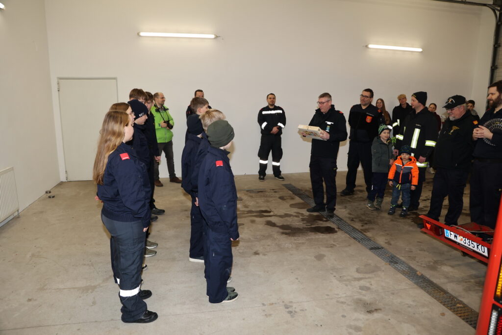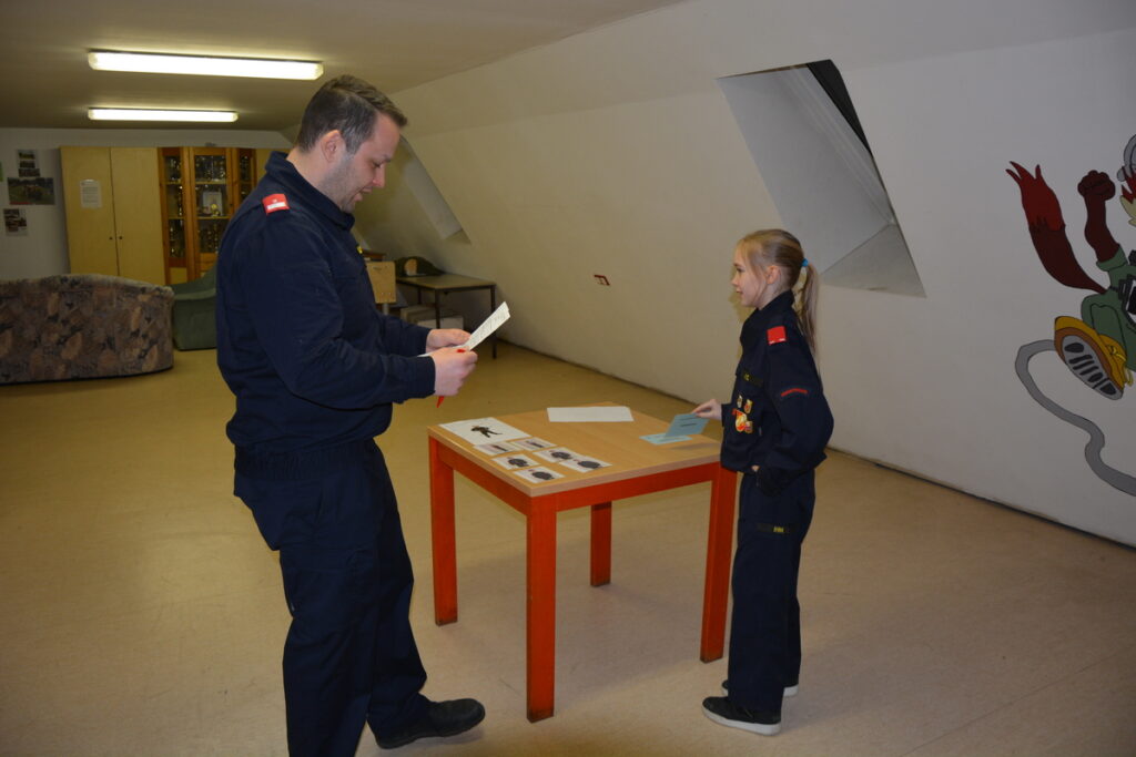 Nach der erfolgreichen Absolvierung des Erprobungsspiel bzw. der 1-3. Erprobung konnten von Abschnittsfeuerwehrkommandantstellvertreter ABI Werner Braun und dem Bezirkssachbearbeiter Feuerwehrjugend BSB Karl „Noko“ Großhaupt die neuen Dienstgrade an die Mädchen und Burschen überreicht werden. Der Stellvertreter des Leiters des Verwaltungsdienstes im Abschnittsfeuerwehrkommando Stockerau OBI Franz Tittler überreichte den Kinder natürlich noch die obligatorischen Schwedenbomben und Schokobananen, welche im Anschluss auch gleich verzehrte wurden.