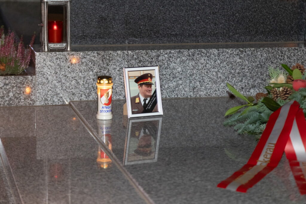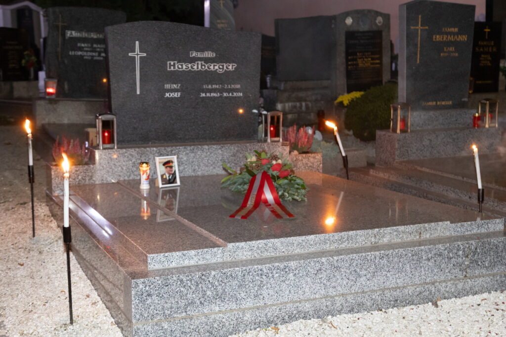 Danach machten sich alle auf den Weg nach Hausleiten, wo am Grab des im April 2024 verstorbenen Abschnittsfeuerwehrkommandantstellvertreter Josef Haselberger ebenfalls ein Blumenbukett niedergelegt wurde. Abschnittsfeuerwehrkommandant BR Manfred Kreitmayer würdigte in seine Ansprache die Verdienste von Josef Haselberger für das Abschnittsfeuerwehrkommando Stockerau.