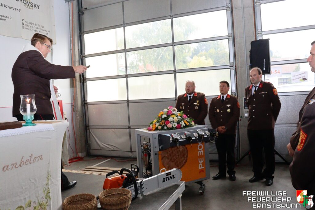 Der Sonntag begann um 10:00 Uhr mit einer Feldmesse, abgehalten von Feuerwehrkurat Pfarrprovisor Mag. Siegfried Bamer. Im Anschluss wurden der neue Atemluftkompressor und die Rettungssäge gesegnet.