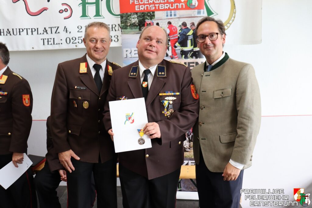 Danach folgte der Höhepunkt des Festaktes, die Ehrung verdienter Kameraden. Überreicht wurden diese durch Landesfeuerwehrrat und engen Freund der Freiwilligen Feuerwehr Ernstbrunn Alois Zaussinger.