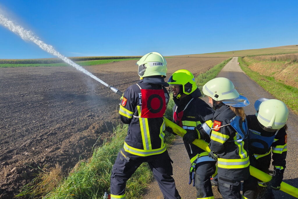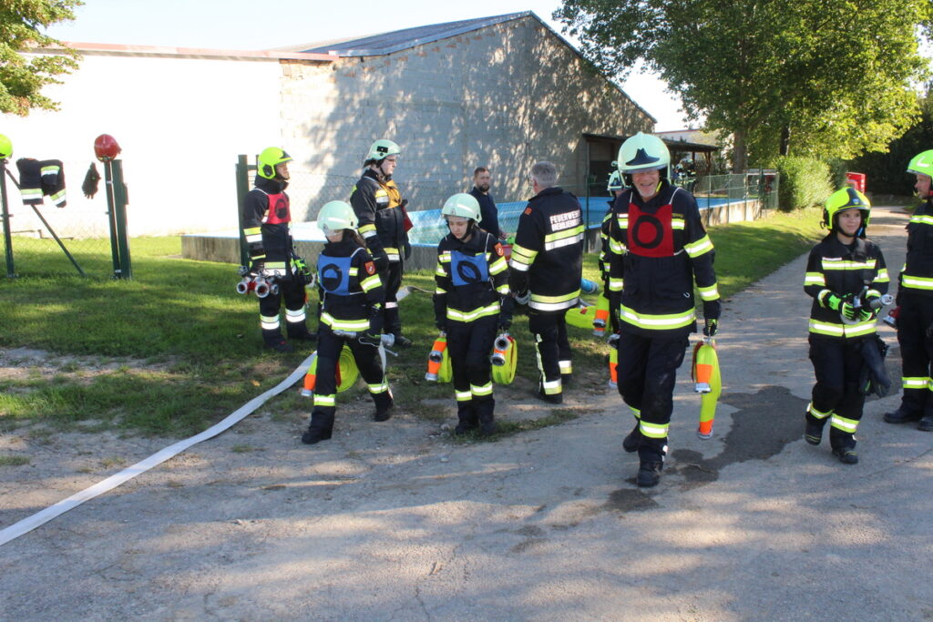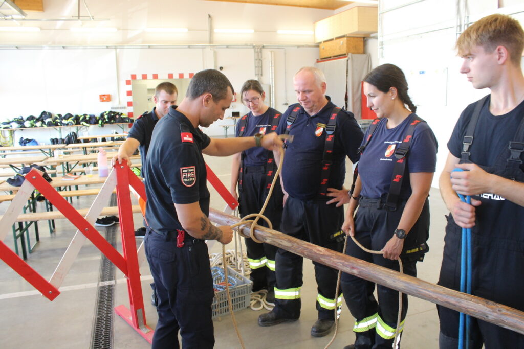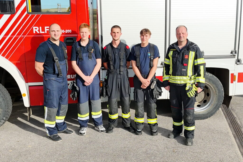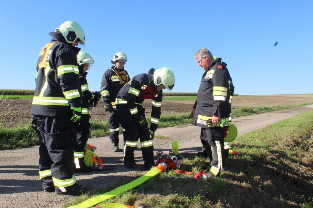 Gegen 15 Uhr fand schließlich das Abschlussmodul Truppmann statt. Das Prüferteam HBI Alexander Mattausch, BM Wolfgang Unterberger, HFM Christian Holan und HBI Markus Schauhuber unter der Leitung von BSB Ausbildung OBI Franz Tittler konnte sich von den gezeigten Leistungen überzeugen.