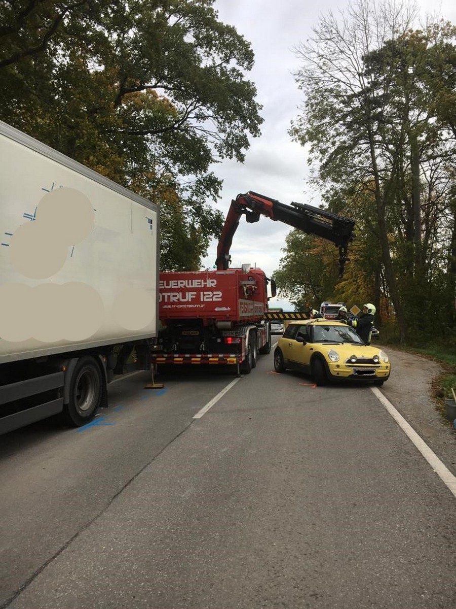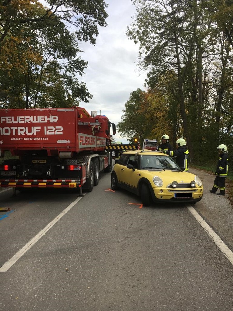 Beim Eintreffen der Freiwilligen Feuerwehr wurden die Lenker der Fahrzeuge bereits vom Roten Kreuz versorgt und ins Krankenhaus gebracht. Der PKW wurde mit dem Wechselladefahrzeug auf den Bauhof Ernstbrunn verbracht und der LKW wurde mit dem Rüstlöschfahrzeug auf einen Abstellplatz geschleppt.