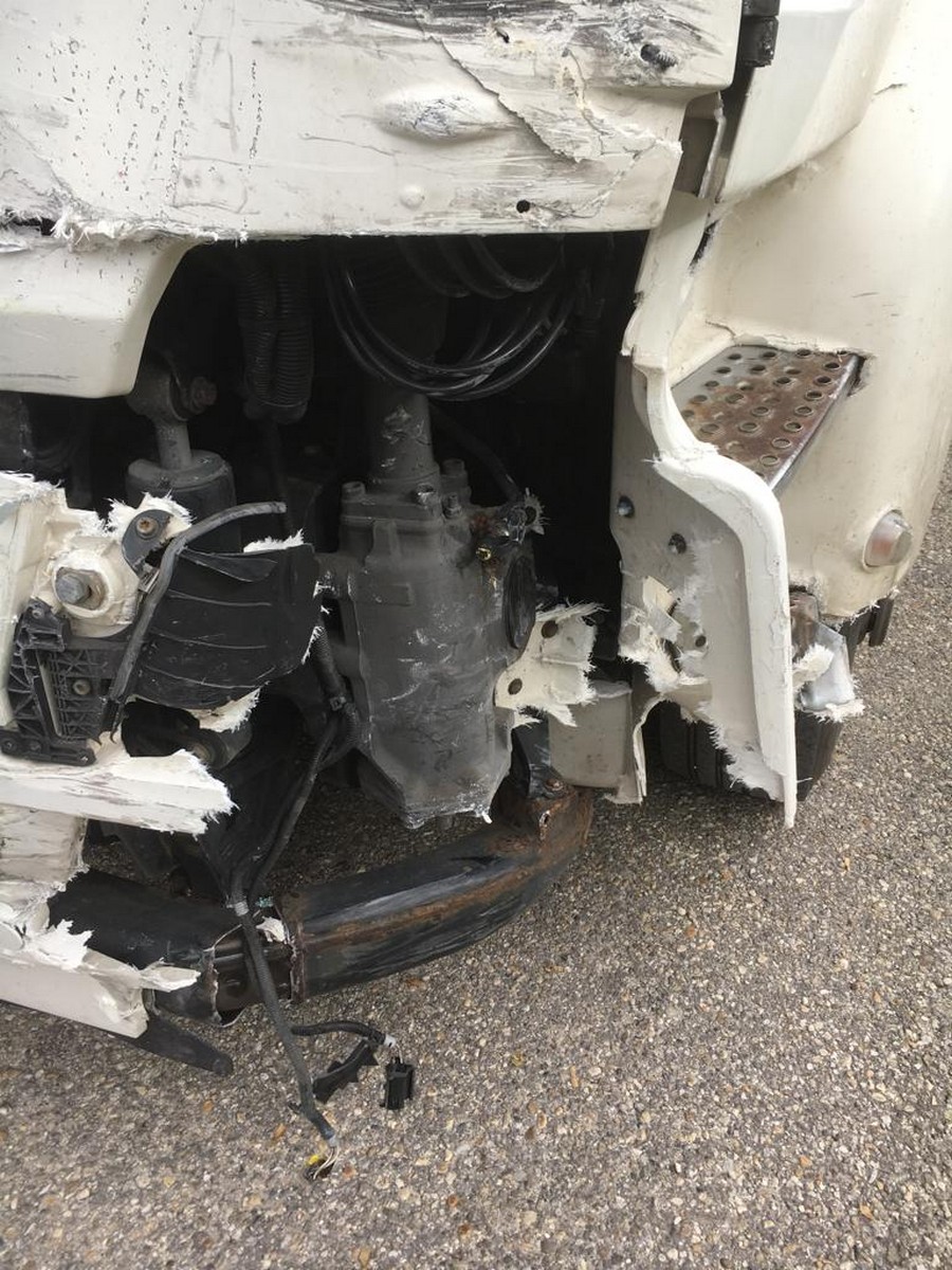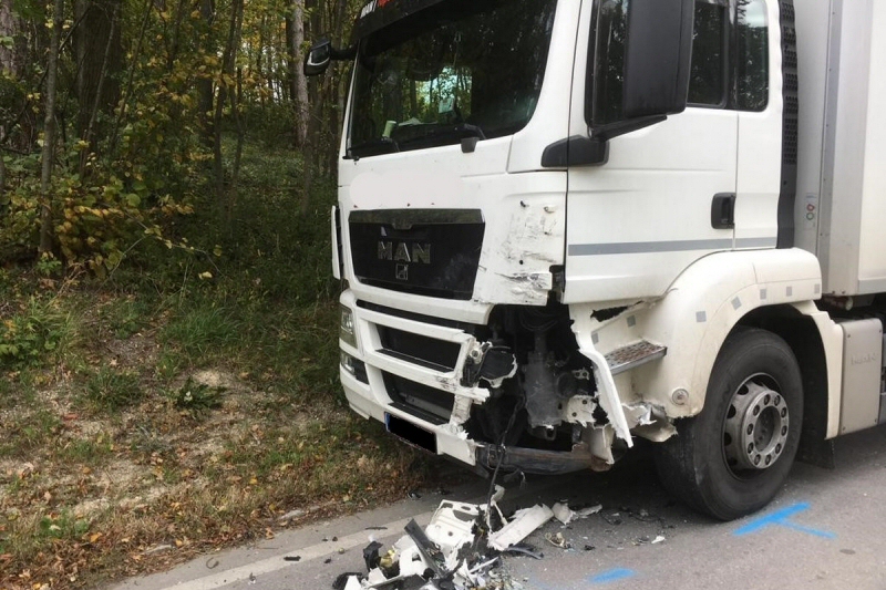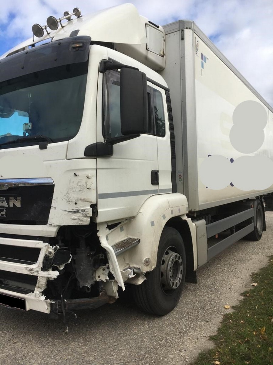Ein PKW war mit einem LKW kollidiert und blieb fahruntüchtig auf der Straße stehen.