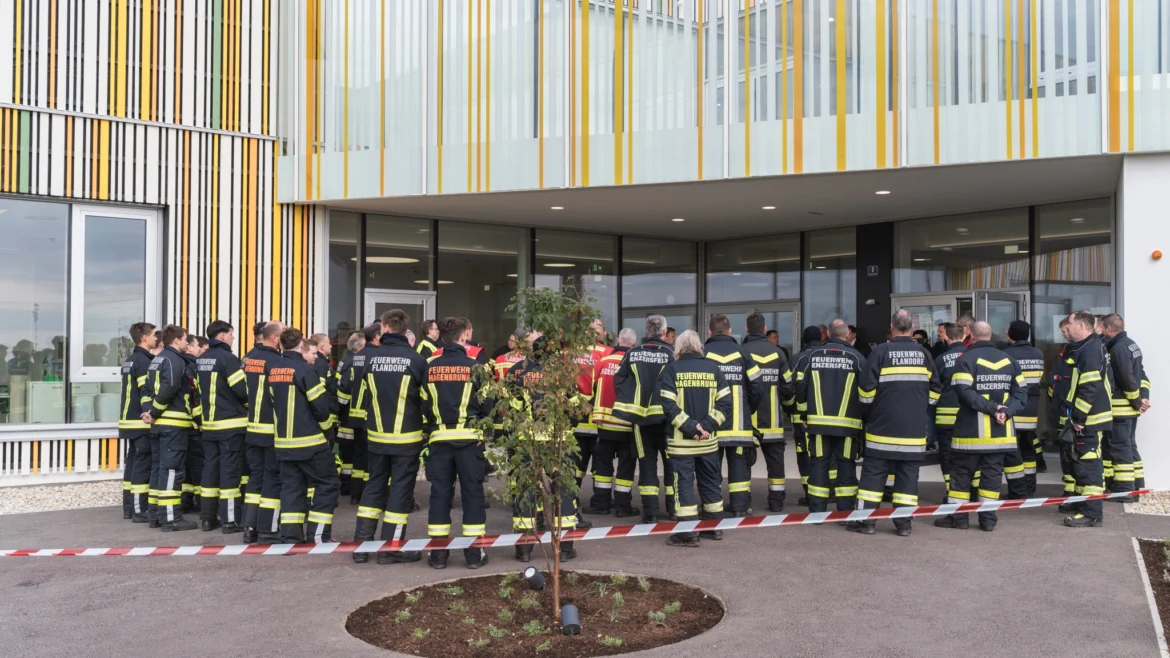Übungsannahme war ein Schadstoffeinsatz in der neu eröffneten Volksschule Hagenbrunn, bei dem Gas in einem Technikraum ausgetreten war und mehrere Kinder und eine erwachsene Person vermisst wurden.