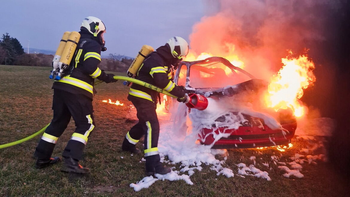 Beim ersten Szenario handelte es sich um einen ausgedehnten Fahrzeugbrand, den es galt, mit wenig vorhandenem Wasser zu löschen. Dies gelang den drei anwesenden Feuerwehren Roseldorf, Steinabrunn und Geitzendorf bravourös und es konnte mit nur 1.800 Litern Wasser nach kurzer Zeit bereits „Brand aus“ gegeben werden.