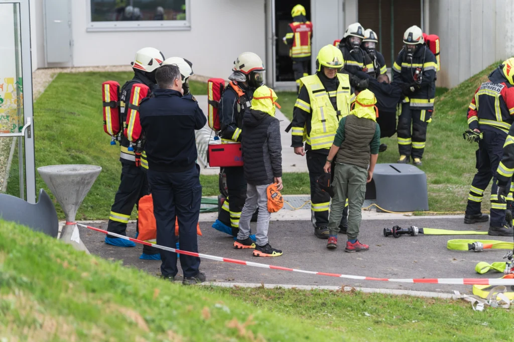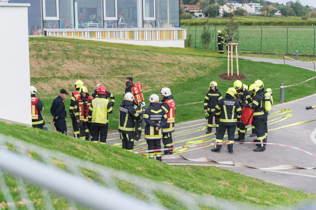 Nachdem gegen 10:00 Uhr die Brandmeldeanlage im Gebäude ausgelöst wurde, fuhr die ortsansässige Feuerwehr Hagenbrunn umgehend zum Einsatzort. Nach einer kurzen Erkundung und Lagefeststellung, entschied der Einsatzleiter die Alarmstufe umgehend zu erhöhen. Laut Zeugenaussagen galten insgesamt vier Kinder und eine erwachsene Person als vermisst. Das Gebäude konnte aufgrund eines deutlich wahrzunehmen Gasaustrittes, nur mit Atemschutz betreten werden.