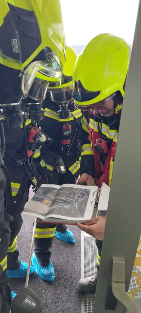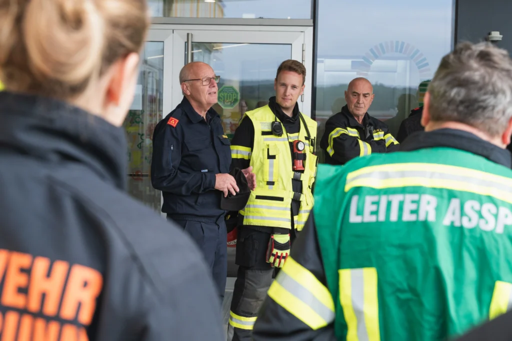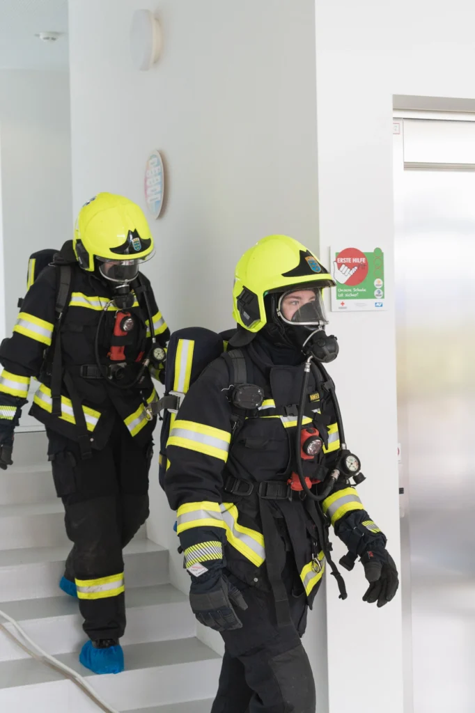 Um den „Einsatz“ in einem solch großen und komplexen Gebäude besser koordinieren zu können, wurde eine Einsatzleitung aufgebaut und der „Einsatz“ in zwei Einsatzabschnitte geteilt. Mehrere Atemschutztrupps durchsuchten das gesamte Gebäude und konnten nach kurzer Zeit alle gesuchten Personen ins Freie bringen und Lüftungsmaßnahmen durchführen.