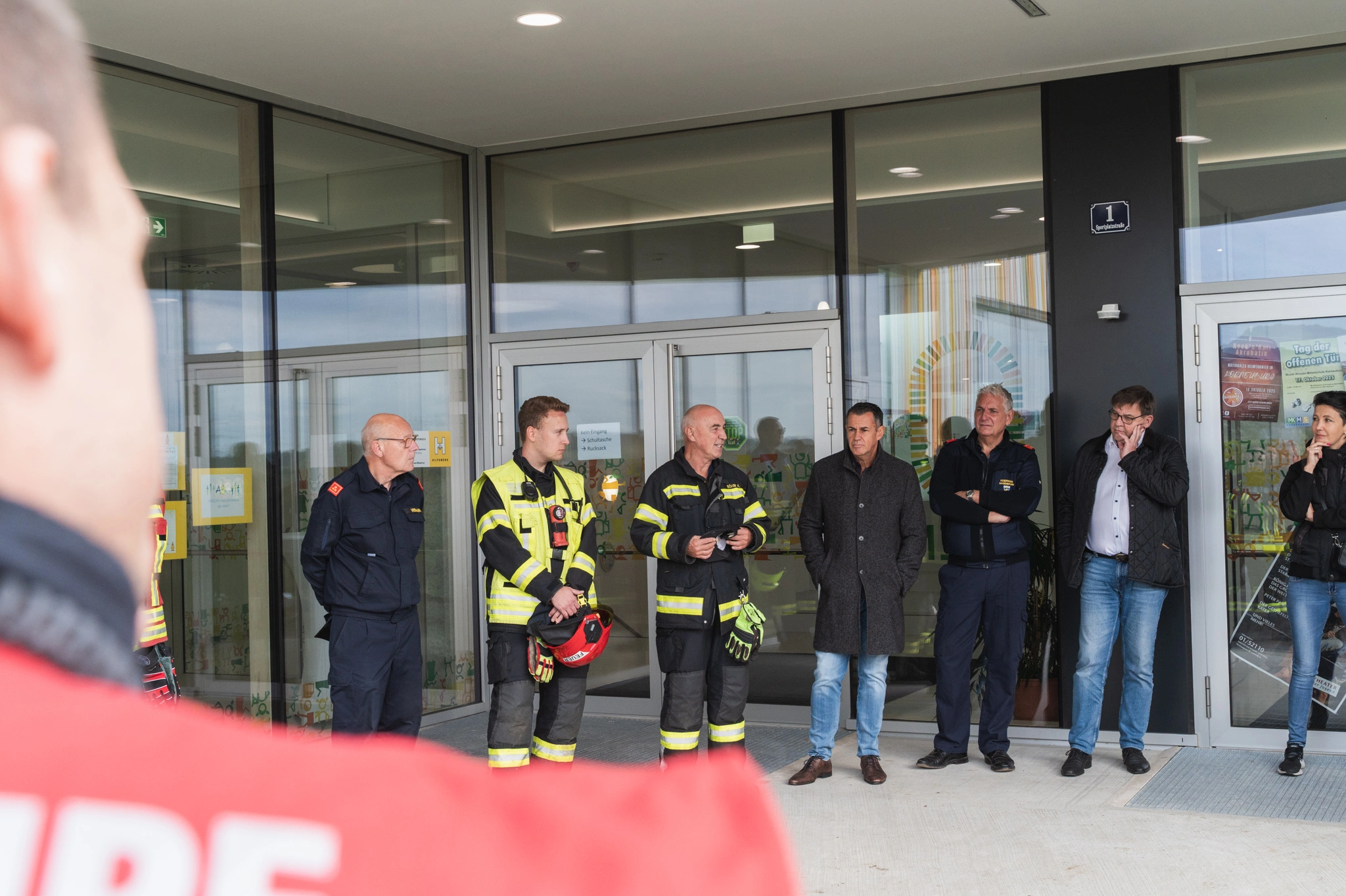 Die Einsatzübung wurde von den Bürgermeistern der Marktgemeinde Hagenbrunn, Michael Oberschil und der Marktgemeinde Enzersfeld im Weinviertel, Friedrich Vinzens, als auch von Unterabschnittskommandant HBI Bernhard Hermann, Abschnittsfeuerwehrkommandantstellvertreter ABI Karl Böhm sowie der Direktorin der Volksschule Hagenbrunn beobachtet. Hier konnten die Mitglieder die hervorragende Zusammenarbeit und Einsatzschlagkraft beeindruckend unter Beweis stellen.