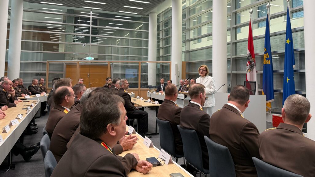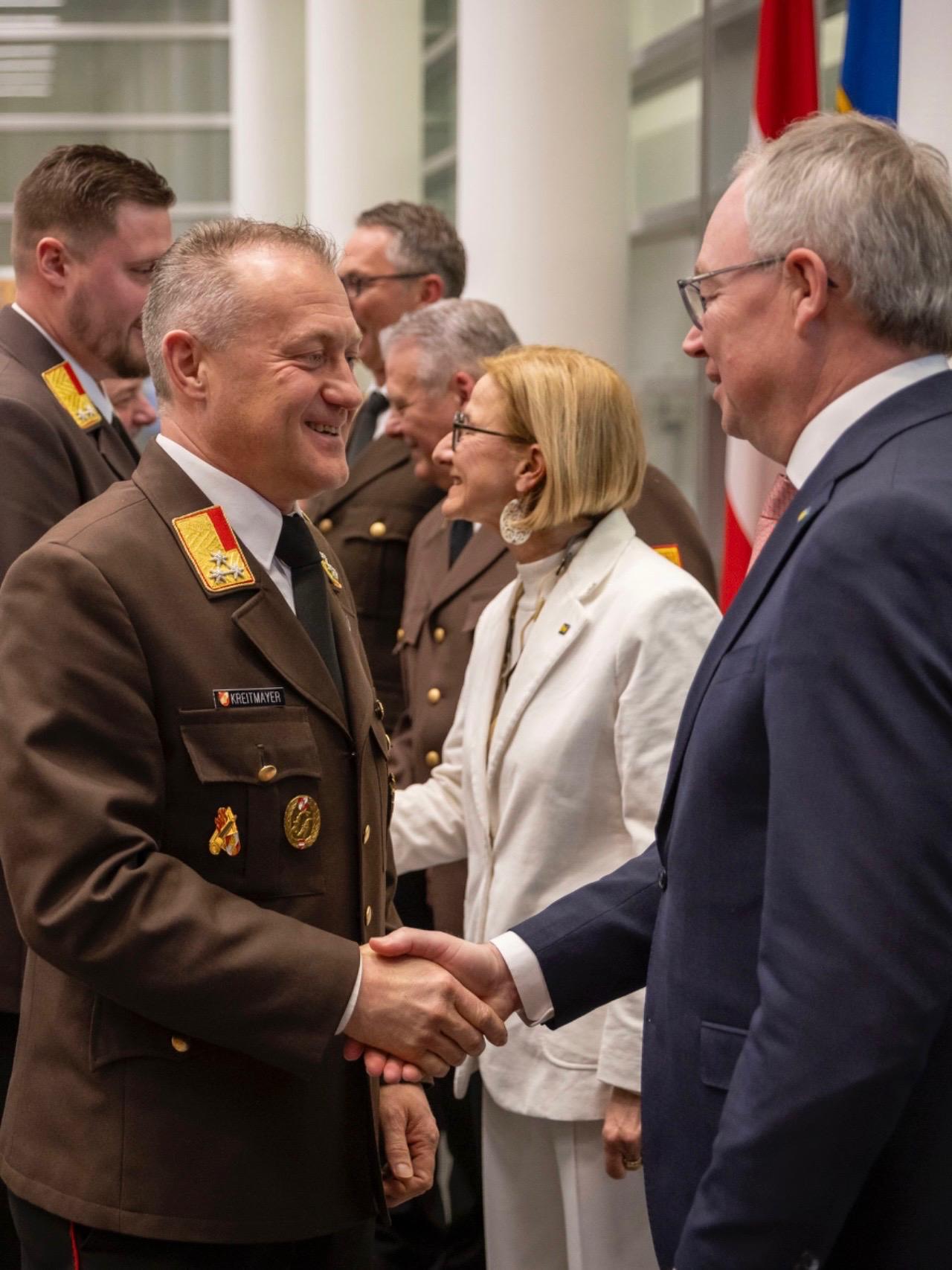 Auch das Bezirksfeuerwehrkommando Korneuburg war bei diesem wichtigen Anlass vertreten, Bezirkskommandant OBR Manfred Kreitmayer und sein Stellvertreter BR Stefan Hofmann nahmen an der Veranstaltung teil und gratulierten zur Wiederwahl.